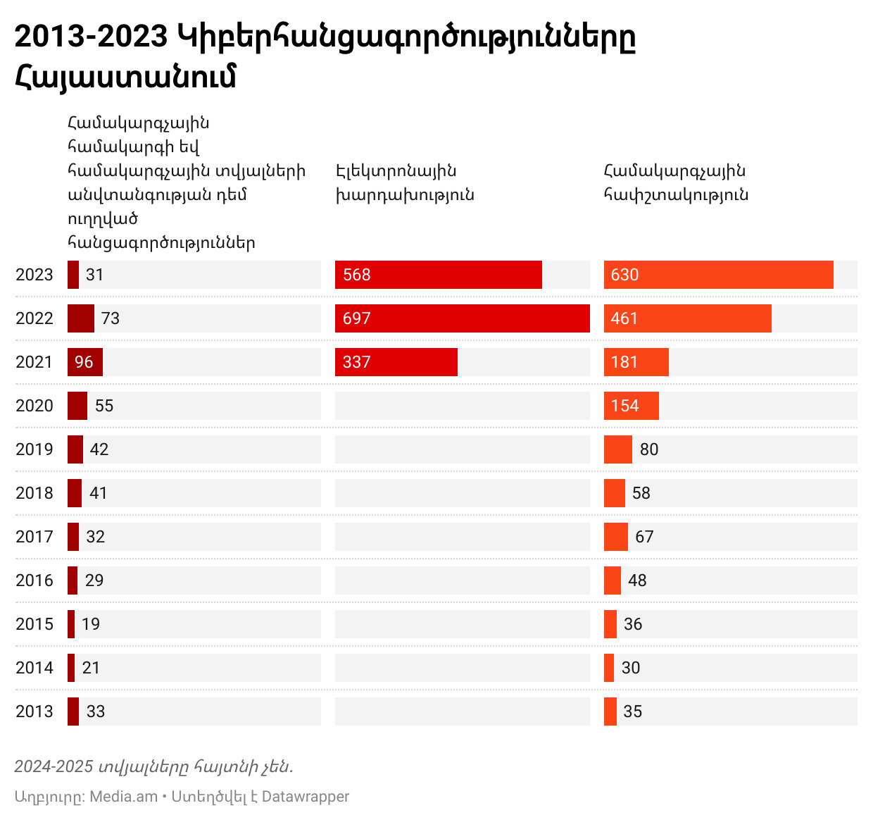 Հայաստանում կիբերհանցագործությունների վիճակագրությունը վերջին տարիներին աճել է։ 4-5 տարի առաջ նման հանցագործությունների զոհ էր դառնում տարեկան 300 մարդ, 2022-2023 թվականներին տուժածների թիվն անցել է 1000-ը, իսկ 2024-2025 թվականներին այդ թիվն աճել է 50 %-ով։ Նման դեպքերը հաճախ չեն լուսաբանվում, քանի որ մարդիկ ամաչում են պատմել, հատկապես, երբ խոսքը սիրային կիբերհանցագործությունների մասին է։