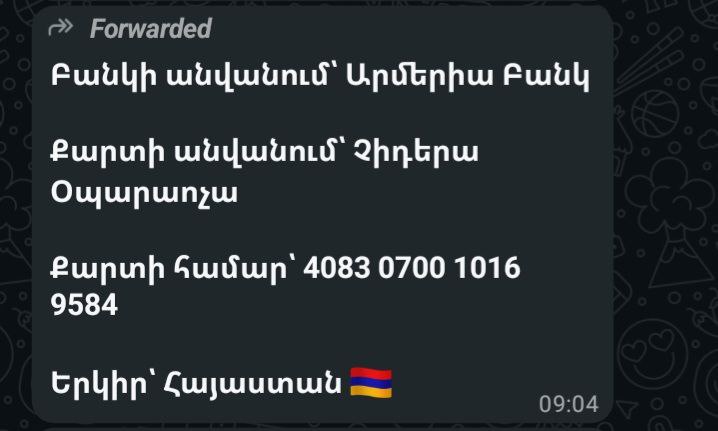 Գումարը, ըստ գերմանացու, պետք է փոխանցվեր բանկային հաշվեհամարին, որը պատկանում է CHIDERA OPARAOCHA անունով անձի, որն այդքան էլ գերմաներեն չէր հնչում։ Բանկը Armeria Bank-ն էր, որը գոյություն չունի, իսկ WhatsApp-ի համարը սկսվում է +1-ով, որը Հյուսիսային Ամերիկայի հեռախոսազանգերի կոդն է։