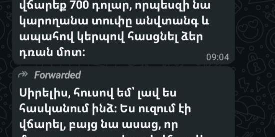 Ա․Ս.-ն (անվան եւ ազգանվան սկզբնատառերը փոխված են) մեկ ամիս WhatsApp-ով շփվում էր մի տղամարդու հետ, ով ներկայացել էր գերմանացի և ասել, թե ապրում է Գերմանիայում։ Խոստացել էր երջանիկ կյանք, ամուսնություն, տուն։