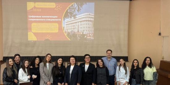 Երևանի պետական համալսարան կատարած այցի շրջանակներում Ղազախստանի Աբայի անվան ազգային մանկավարժական համալսարանի պատվիրակները անցկացրել են բաց դասախոսություն։ Այն նախատեսված էր ժուռնալիստիկայի ֆակուլտետի բակալավրիատի ուսանողների համար՝«ժամանակակից մասնագետի թվային իրավասությունները» թեմայով։